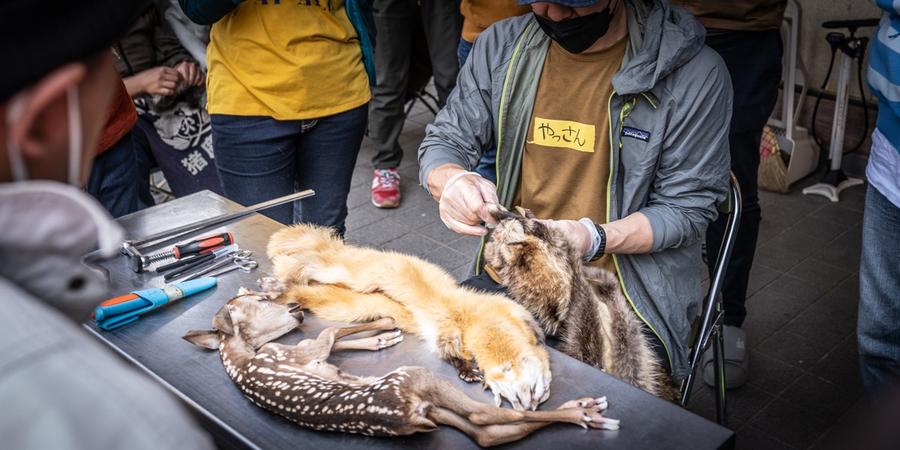 ・実際に鹿または中型動物をご用意し、皮剥ぎを実演